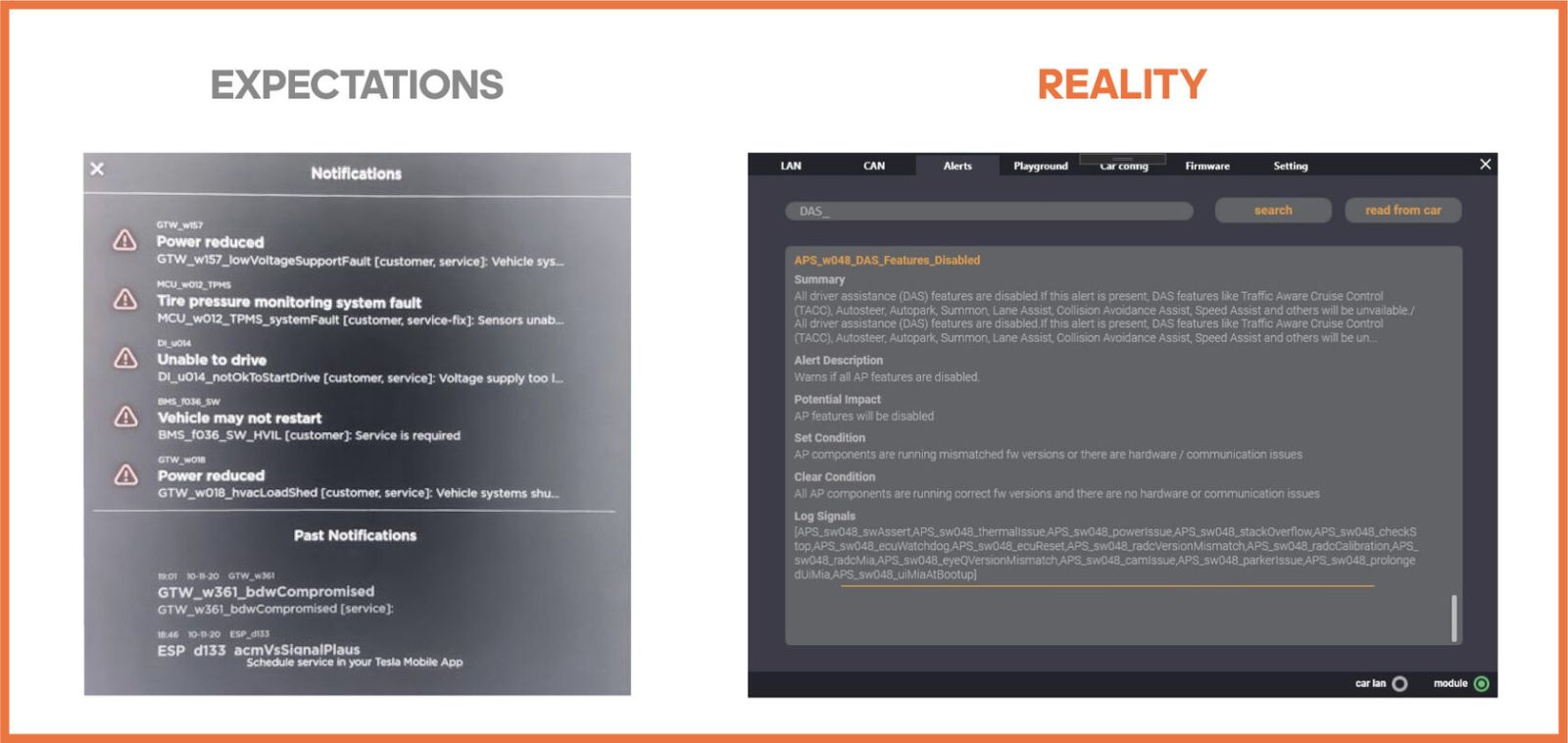 En la última versión del software, hemos incorporado descripciones de 10,000 alertas para todas las ECUs del vehículo. Actualmente, se pueden detectar fallos en cuestión de minutos, cuando antes, esta tarea podía llevar horas.