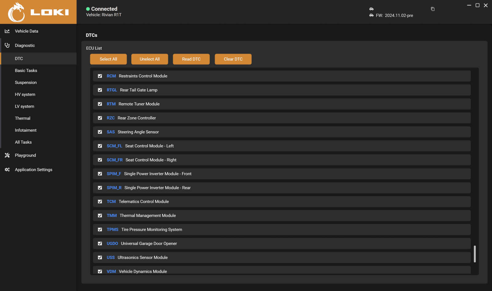 La ventaja de LOKI PRO es su compatibilidad con el conjunto completo de módulos Rivian, incluidos los sistemas de alto voltaje, ADAS, gestión de batería y control de suspensión.