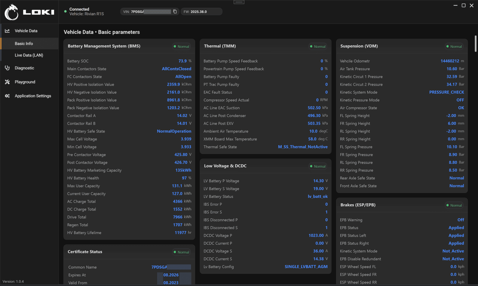 Live Data es una herramienta esencial para los técnicos, ya que permite supervisar los parámetros de funcionamiento del vehículo en tiempo real. LOKI PRO muestra parámetros en streaming de todos los sistemas Rivian, incluidos: